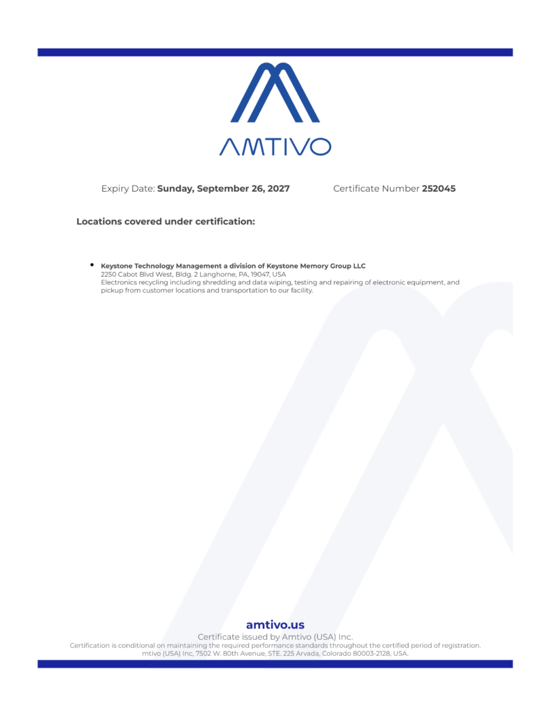 We offer secure, certified data destructions services, in accordance with NIST 800-88 standards.